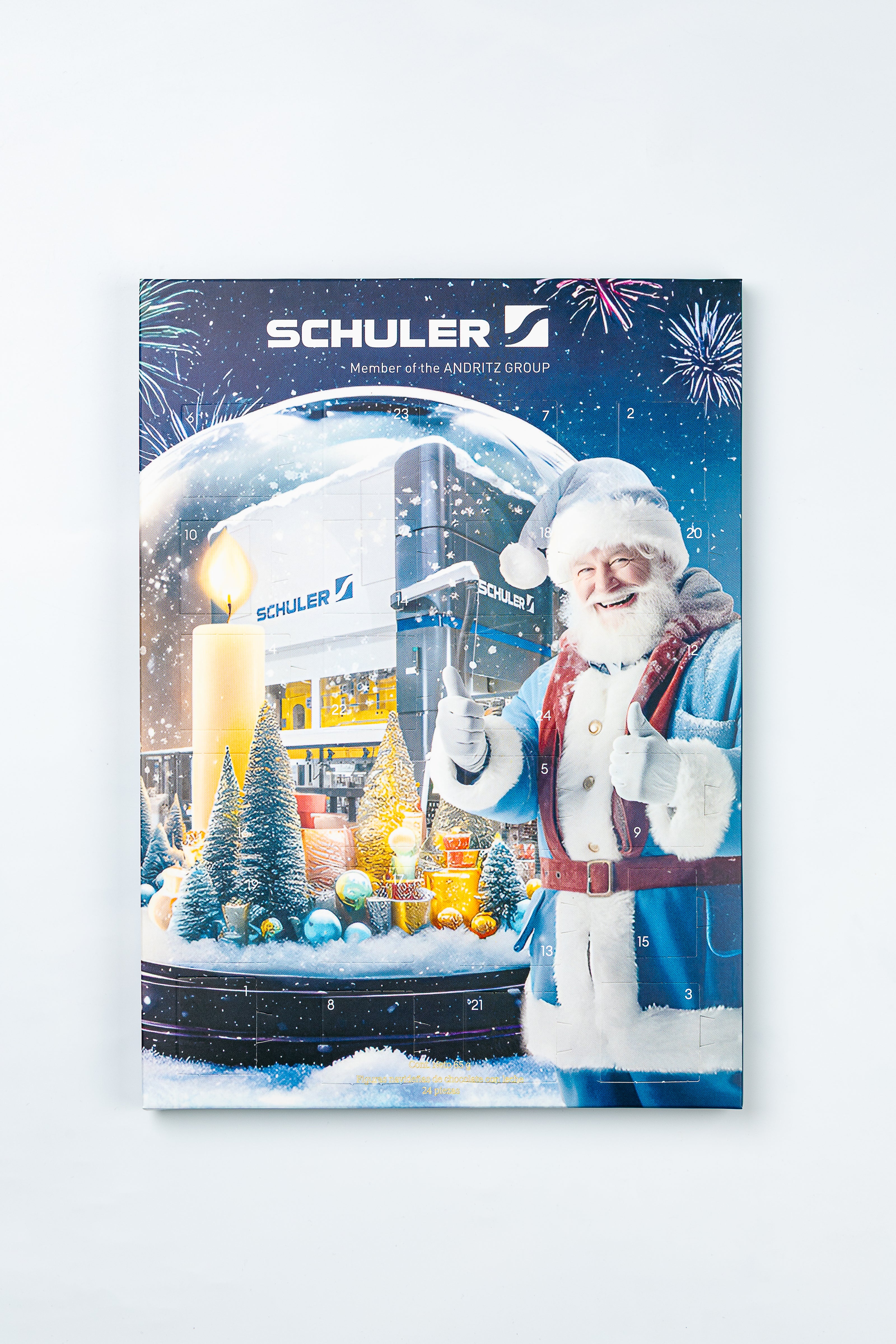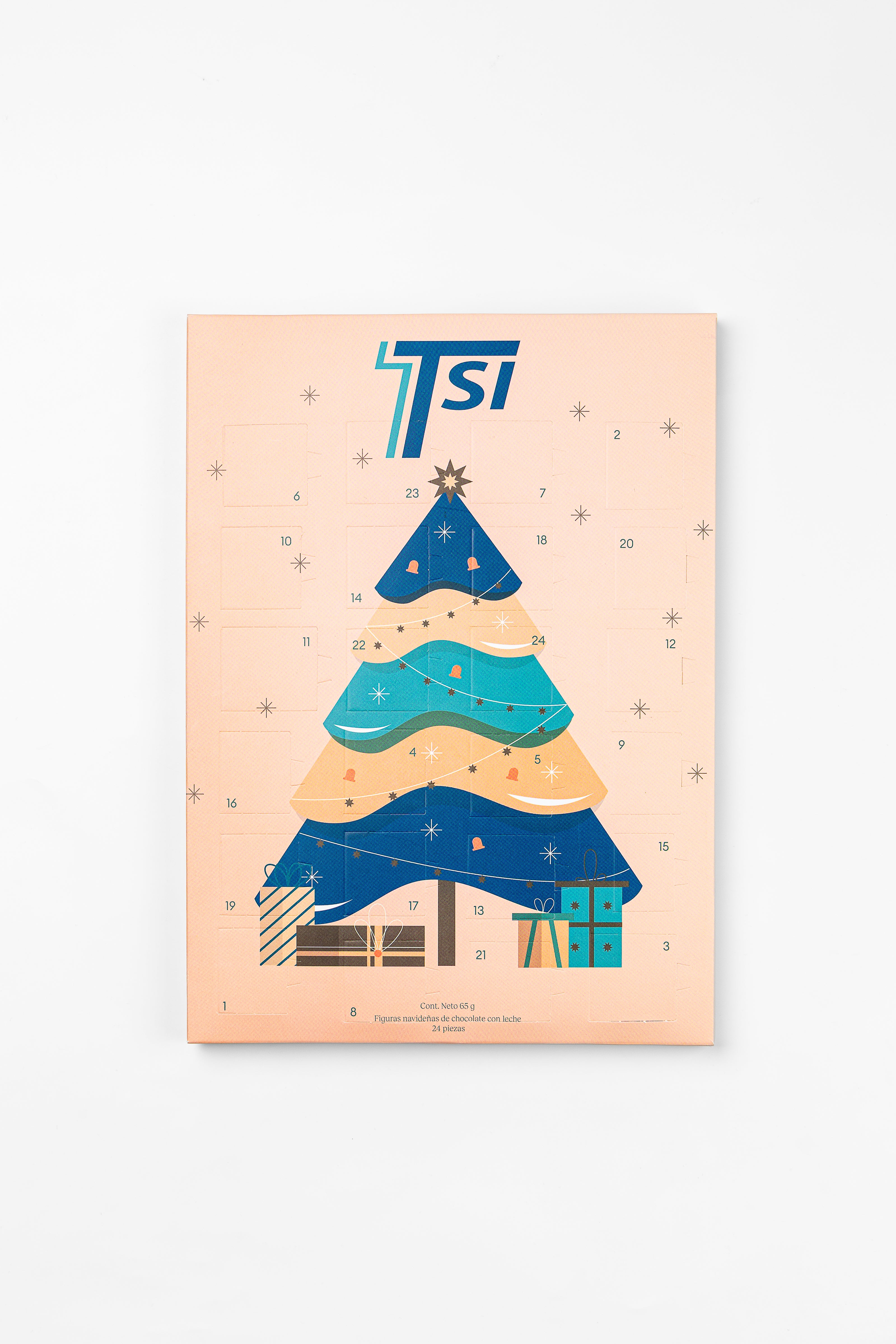 Calendario de adviento navideño con 24 figuras de chocolate con leche