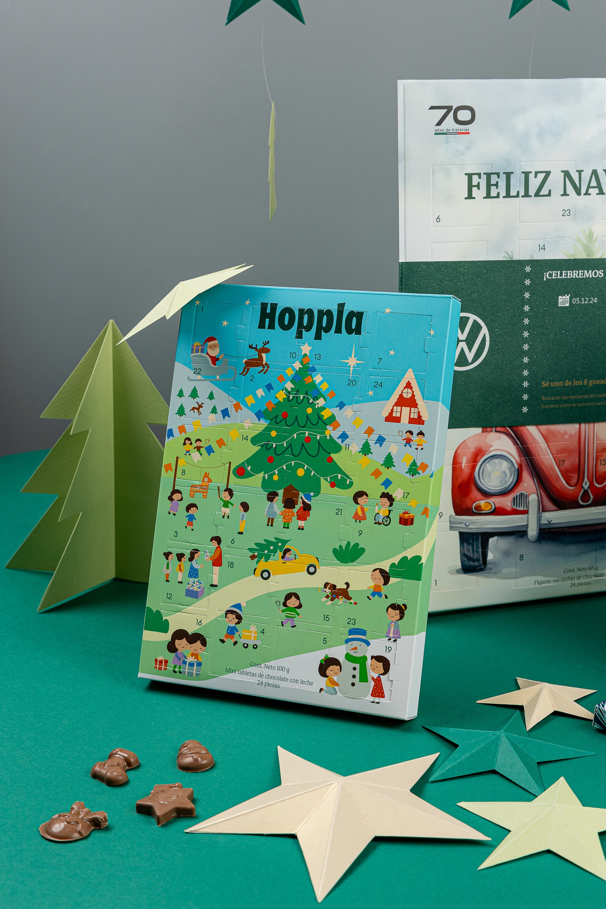 Calendario de Adviento con 24 figuras navideñas de chocolate.